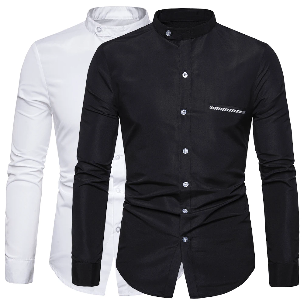 Camisa de cuello mandarín para hombre 2018 nuevo otoño Camisa de cuello chino sólido de manga larga para hombre Camisa Social Masculina 5xl| | - AliExpress camisas cuello mandarin para hombre