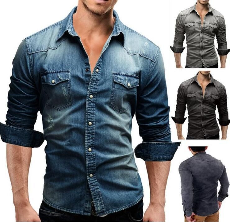 Compre Hombres Camisas Jean 2017 Hombre Camisas De Manga Larga Casual Color Sólido Mezclilla Slim Fit Camisas De Vestir Para Hombre 3XL A 16,4 € Del Huhu930 | DHgate.Com camisa jean negra hombre