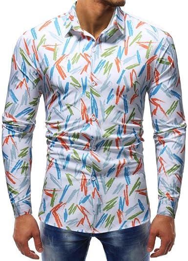 Amazon.com: Sumen - Camisa para hombre, estampada floral, ajustada, casual, manga larga, con botones: Clothing camisa de hombre estampado floral