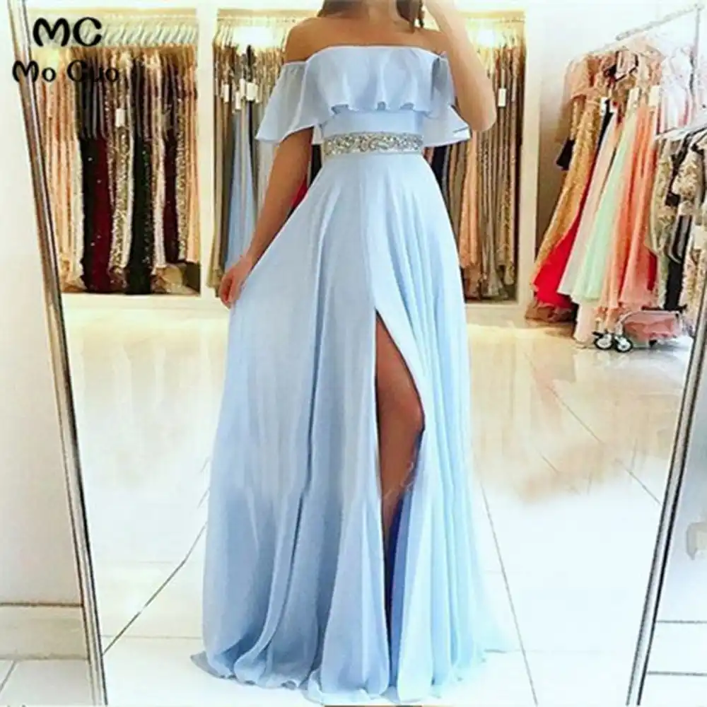 Vestidos de Noche Línea A con hombros descubiertos vestidos de graduación largos de manga corta con abertura frontal vestidos de fiesta de chifón para mujer vestido de noche| | - AliExpress vestidos largos