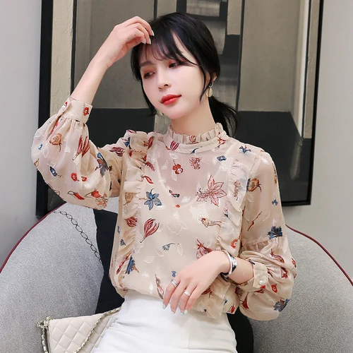 Blusas femeninas, novedad de 2018, a la moda Blusa de gasa, Blusas estampadas para mujer, camisas con estampado Floral, Tops de verano para mujer, talla grande|summer ladies tops|shirt summerchiffon blouse women -