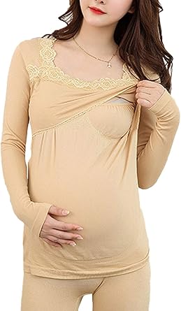 Embarazadas Mujer Ropa Interior Térmica Manga Larga con Encaje Moda Ropa Premama Camiseta De Calor para Elegantes Leggings Respirable Cómodo Mode De Marca Ropa Interior Funcional Conjunto: Amazon.es: Ropa y accesorios camiseta interior mujer encaje manga larga