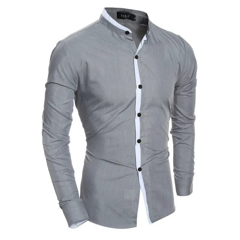 Camisa de Color contraste de articulación de moda 2019 otoño e invierno nuevo estilo de moda cuello de pie colores mixtos Placket hombres Casual Delgado Fi| | - AliExpress camisas para hombre cuello neru