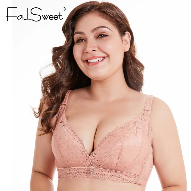 Sujetador FallSweet para mujer de talla grande D E Copa Plunge sujetadores sin alambre sostén suave Sexy push up Bra|Sujetadores| - AliExpress sujetadores plunge