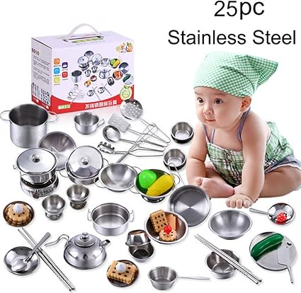 Amazon.com: Juego de ollas y sartenes, utensilios de cocina, de cocina de acero inoxidable, juguetes de simulación para desarrollo para niño de 3 años y mayor: Toys \u0026 Games cazuelas juguete