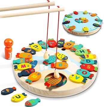 Amazon.com: Juego magnético de pesca de madera Lydaz, 30 piezas, letras del alfabeto magnético, juguete de pesca, juguetes educativos de Montessori para niños de 3 4 5 años de edad y niñas: juego magnetico amazon