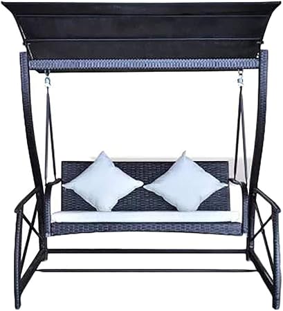 Columpio de jardín con 2 cojines y sombrilla ajustable, columpio de asiento con sombrilla en Polyrattan, exterior, patio, terrazas, patio, negro, 167 x 130 x 178 cm (ancho x profundidad x altura): Amazon.es: Hogar columpio con sombrilla