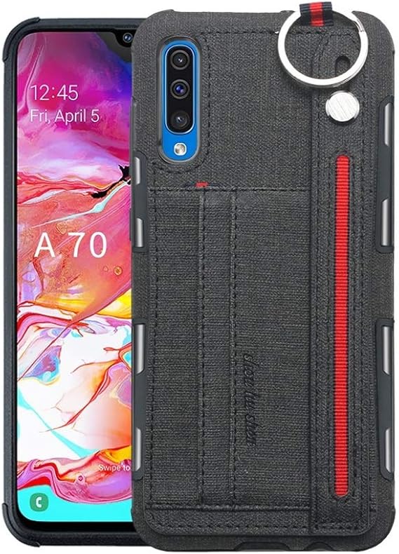 Amazon.com: Samsung Galaxy A70 Case, Card Holder Wallet with Hand Strap Ring Holder Stand Fabric Pattern PU Leather TPU Shockproof Protection Snap on Cover Case for Samsung Galaxy A70 (Black) a70 precio amazon