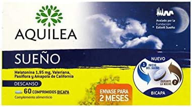 AQUILEA SUEÃ'O MELATONINA 1.95 + VALIANA + PASIFLORA + AMAPOLA DE CALIFORNIA 60 COMPRIMIDOS BICAPA: Amazon.es: Salud y cuidado personal aquilea sueño amazon