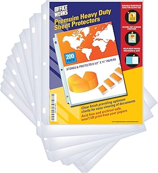 Amazon.com: Protectores de hojas transparentes resistentes, 8.5 x 11 pulgadas, paquete de 100, carga superior, agujeros reforzados, sin ácidos/seguro para archivar: Office Products paquete de piezas reciclables wow