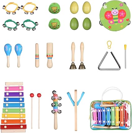 Amazon.com: bebé juguetes juego de instrumentos musicales para niños 20pcs Mini Banda Prime bebé de madera Percusión Xilófono de juguete Rhythm Band Tambor Preescolar educativo Aprendizaje Temprano: Musical Instruments instrumentos musicales bebe madera