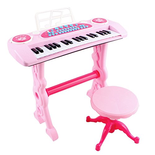 cheap deAO Teclado Electronico Infantil - Piano Karaoke 37 Teclas con Microfono, Taburete, Variedad de Sonidos, Rítmos y Melodias (ROSA) - nic-gruppe.de piano de niña con microfono