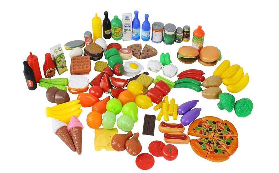 Amazon.com: Play Food Set para niños y juguete comida para jugar, enorme 130 piezas Pretend alimentos juguetes play juguetes Set de cocina con alimentos educativas para niños juguetes para niños Inspira imaginación comida de juguete para niños
