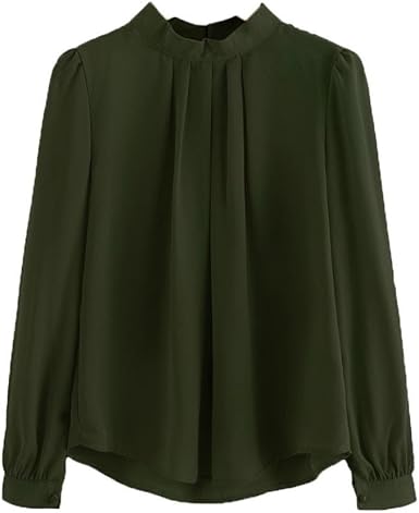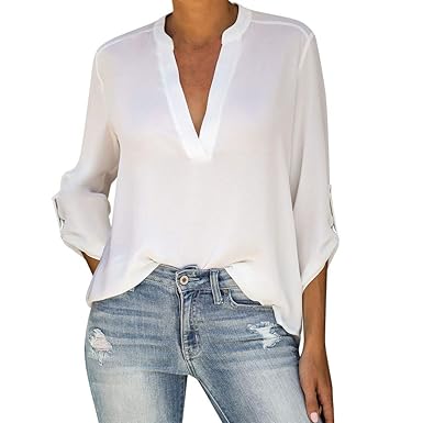 EW Las Mujeres De Cuello En V Manga Larga Camisa De Gasa Blusa camisas de gasa para mujer