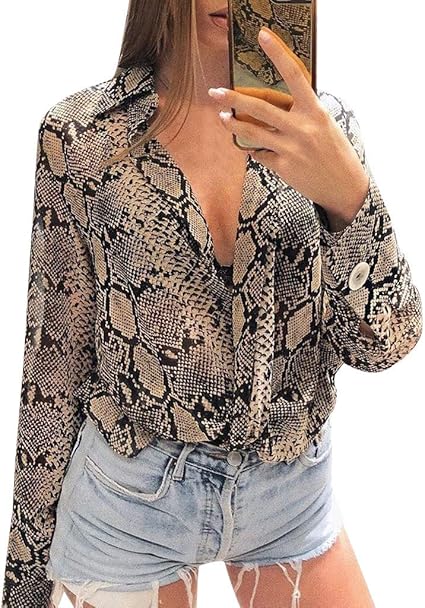 Amazon.com: Blusa sexy con estampado de piel de serpiente, cuello