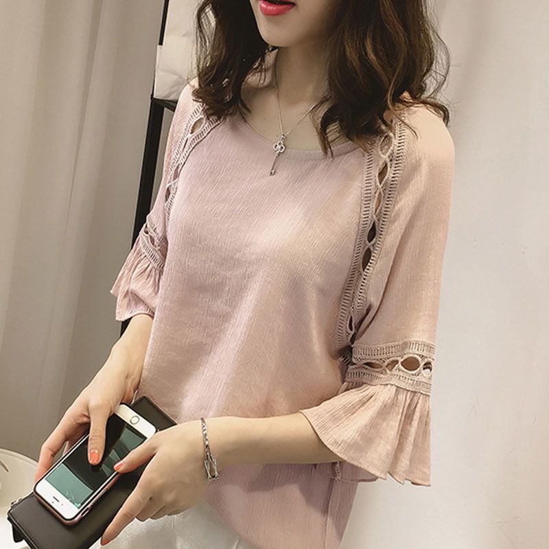 2020 Womens Tops And Blouses Fashion 2019 Hollow Lace Blouse Shirt blusas fashion 2019