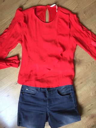 camisa roja mujer zara